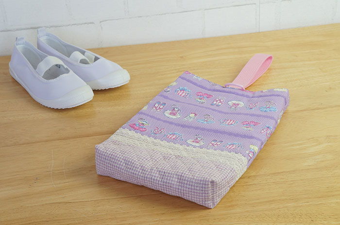 既成サイズ:縦27×横16×マチ4は、上履き用のソフトシューズで小6くらいまでを想定しています(平均サイズ)