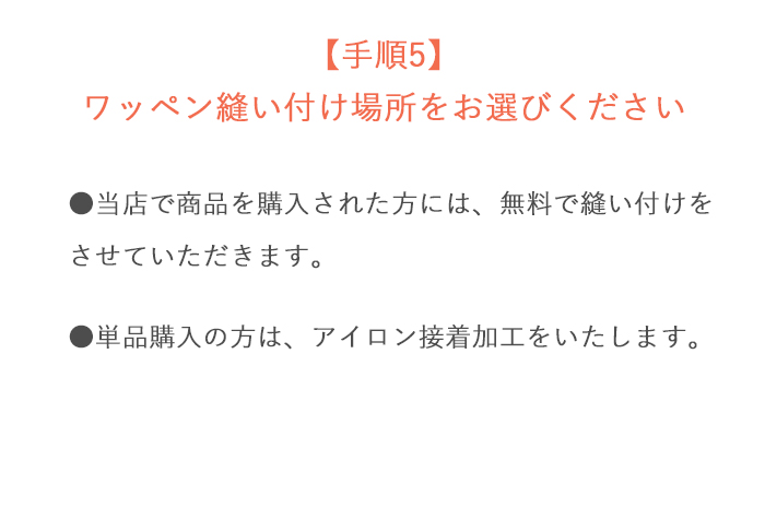 当店商品購入の際は、指定の場所に無料縫い付けします。