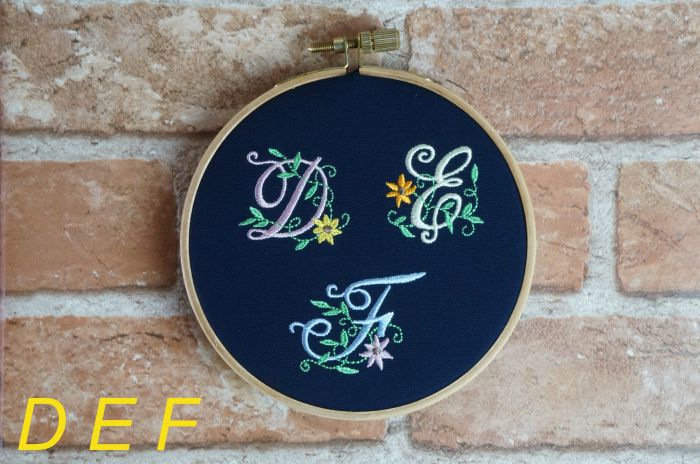 (お見本画像は12センチの刺しゅう枠に3文字ずつ刺繍しています)